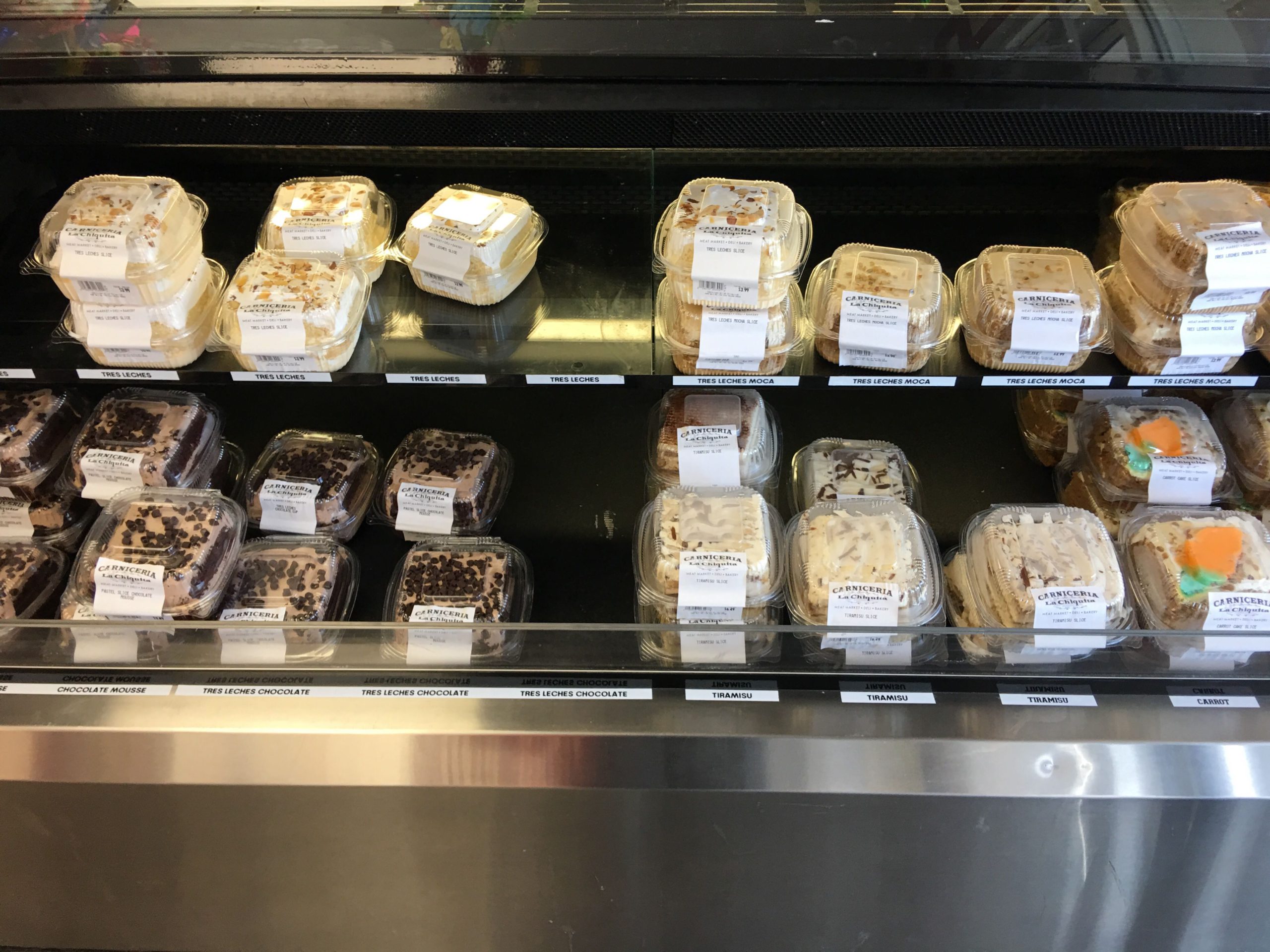Tres Lechesケーキ、オリジナルとチョコ味。3種(Tres)のミルク(Leches)を使ったラテンアメリカ定番のミルク(練乳)漬けバターケーキ。ラテン・スイーツの割には意外と糖度は高くなく、しっとりしてて、かつ食感軽く、とーっても美味しい! アメリカのスーパーマーケットとかで売ってるザ・USAなケーキより断然こっちが美味しく、やみつきスイーツリストに入ってます!